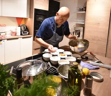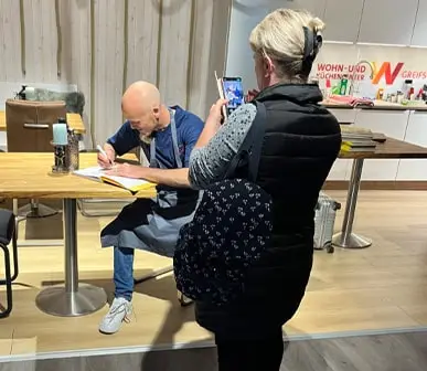 Showkoch Ralf Zacherl zu Besuch im Wohn- und Küchencenter in Greifswald