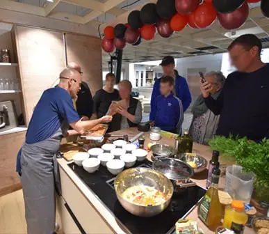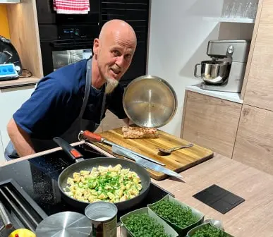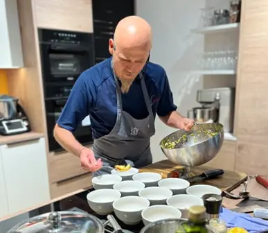 Am 13. April 2024 endete unsere Küchenaktionswoche mit einem großen Highlight, der Showkoch Ralf Zacherl kam zu uns ins Haus und kochte in drei Runden verschiedene Gerichte, die er Schritt für Schritt zubereitete und erklärte.