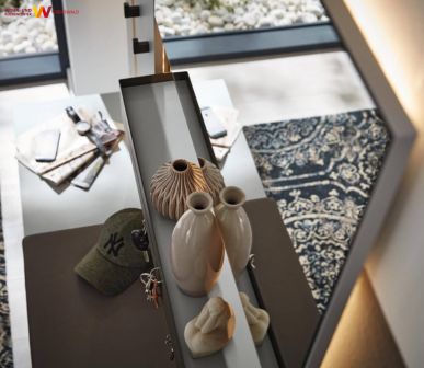 Konsolentische sind eine stilvolle Ergänzung für den Flur. Sie bieten eine praktische Ablagefläche für Schlüssel, Post und andere kleine Gegenstände, die Sie im Eingangsbereich griffbereit haben möchten. Ein Konsolentisch kann auch mit Schubladen oder Regalen ausgestattet sein, um zusätzlichen Stauraum zu bieten. Darüber hinaus können Sie den Tisch mit dekorativen Elementen wie Blumen oder Bilderrahmen verschönern.