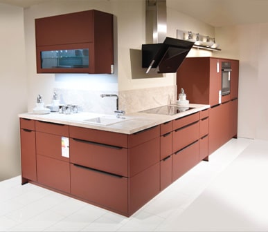 Durch ihre gute und praktische Anordnung eignet sich diese Küche besonders für kleine Räume. An Arbeitsfläche und Stauraum wird es Ihnen bei dieser Form der Küche absolut nicht mangeln. Kurze Laufwege erhöhen zudem die Effizienz beim Zubereiten von Mahlzeiten. Durch die Anordnung entsteht eine natürliche Trennung zwischen dem Arbeitsbereich und der Kochstelle.