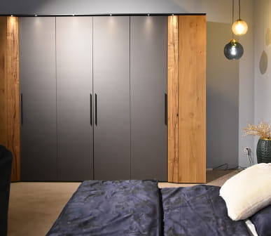 - Drehtürenschränke: Klassisch, mit Schwingtüren, bieten viel Stauraum und sind besonders langlebig. Ideal für große Räume, da die Türen Platz zum Öffnen benötigen.