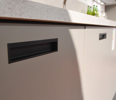 Diese Griffart sieht aus wie eine Muschel, da sie halbrund geformt ist und nach unten offen ist. Aufgrund ihres Designs sind sie in maritimen Küchen besonders gern gesehen.