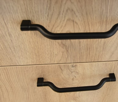 Bügelgriffe sind die häufigste Griffart. Sie sind leicht zu befestigen und zu greifen. Es gibt Sie in vielen Größen und Materialien. Außerdem haben sie ein zeitloses Design, sodass Sie niemals altmodisch werden.