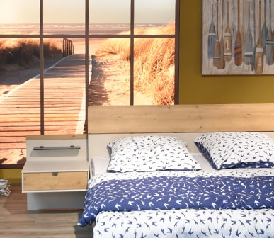 Bei der maritimen Einrichtung werden hauptsächlich Blautöne wie z. B. Marineblau, Hellblau und Rot genutzt, da diese die Farben der Matrosenuniform widerspiegeln, aber auch beige und weiß finden Ihren Platz z. B. in Form von Seilen, Muscheln und Strandsand.