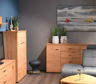 Entscheiden Sie sich bei der Wahl der Möbel für Holzmöbel. Diese wirken im maritimen Stil am natürlichsten und authentischsten.