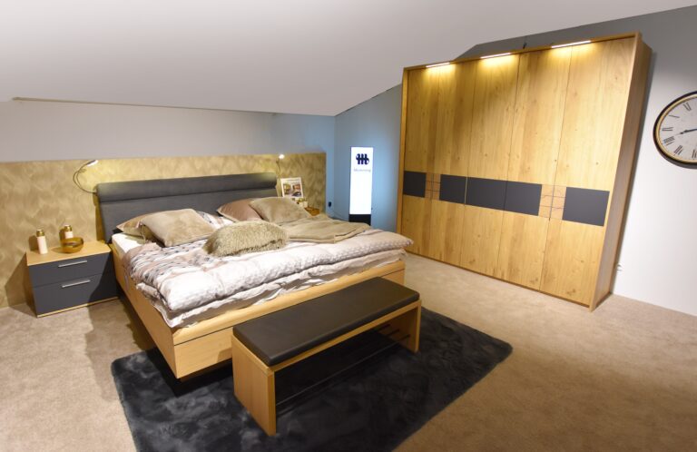 Besuchen Sie das Wohn- und Küchencenter Greifswald und erleben Sie das Schlafzimmer MR Montreal als Ausstellungsstück. Lassen Sie sich von unserem kompetenten Team beraten und entdecken Sie die vielfältigen Gestaltungsmöglichkeiten dieses eleganten Schlafzimmers, das Komfort und Stil perfekt miteinander vereint.