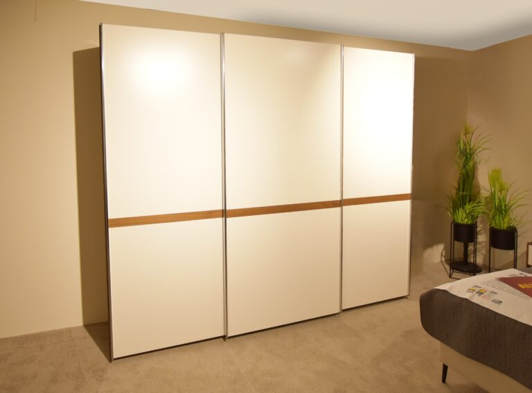 Der Schwebetürenschrank MR Aliga ist ein besonderes Ausstellungsstück im Wohn- und Küchencenter Greifswald, das moderne Eleganz mit großzügigem Stauraum vereint. Dank seines platzsparenden Designs und der praktischen Schwebetüren ist dieser Kleiderschrank ideal für Schlafzimmer, in denen Stil und Funktionalität gleichermaßen gefragt sind.