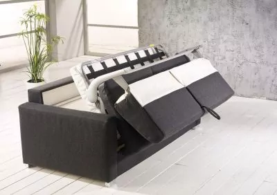 Unser Funktionssofa in edlem Grau präsentiert sich mit einem modernen Design, das sich nahtlos in unterschiedlichste Wohnstile integriert. Die klaren Linien und die zeitlose Farbgebung machen es zu einem vielseitigen Blickfang in Ihrem Wohnzimmer.