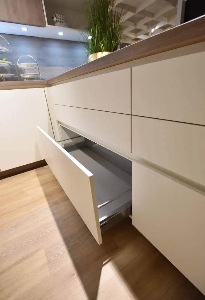 Die Qualität der Küche „Senso Matt“ ist von höchster Güte. Jedes Element, sei es ein Schrank, eine Schublade oder ein Griff, wird sorgfältig gefertigt, um Ihnen eine langlebige und funktionale Küche zu bieten. Die präzise Verarbeitung und die hochwertigen Materialien garantieren Ihnen ein erstklassiges Küchenerlebnis, das Sie jeden Tag genießen werden.