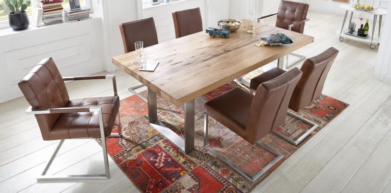 Massiv und elegant in Einem! Das bietet das Speisezimmer MR Tassia von Musterring. Die Balkeneiche bietet einen optischen Hingucker ist jedoch auch stabil und qualitativ hochwertig verarbeitet. Der perfekte Esstisch mit Freischwinger-Stühlen für Ihr Esszimmer.