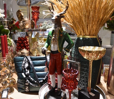 Glitzer, Metalltöne und luxuriöse Akzente prägen diesen Stil. Gold, Silber, Champagnerfarben und feine Glasornamente verleihen dem Zuhause eine festliche Noblesse. Große Deko-Elemente wie opulente Kränze oder üppige Tischgestecke setzen echte Highlights.
