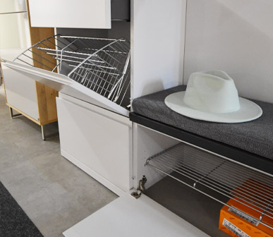 Wählen Sie hier eine Sitzgelegenheit mit zusätzlichem Stauraum. Dieser ist nämlich perfekt für Mützen, Schals oder andere Dinge. So können Sie bequem Ihre Schuhe anziehen und haben einen zusätzlichen Stauraum gewonnen.